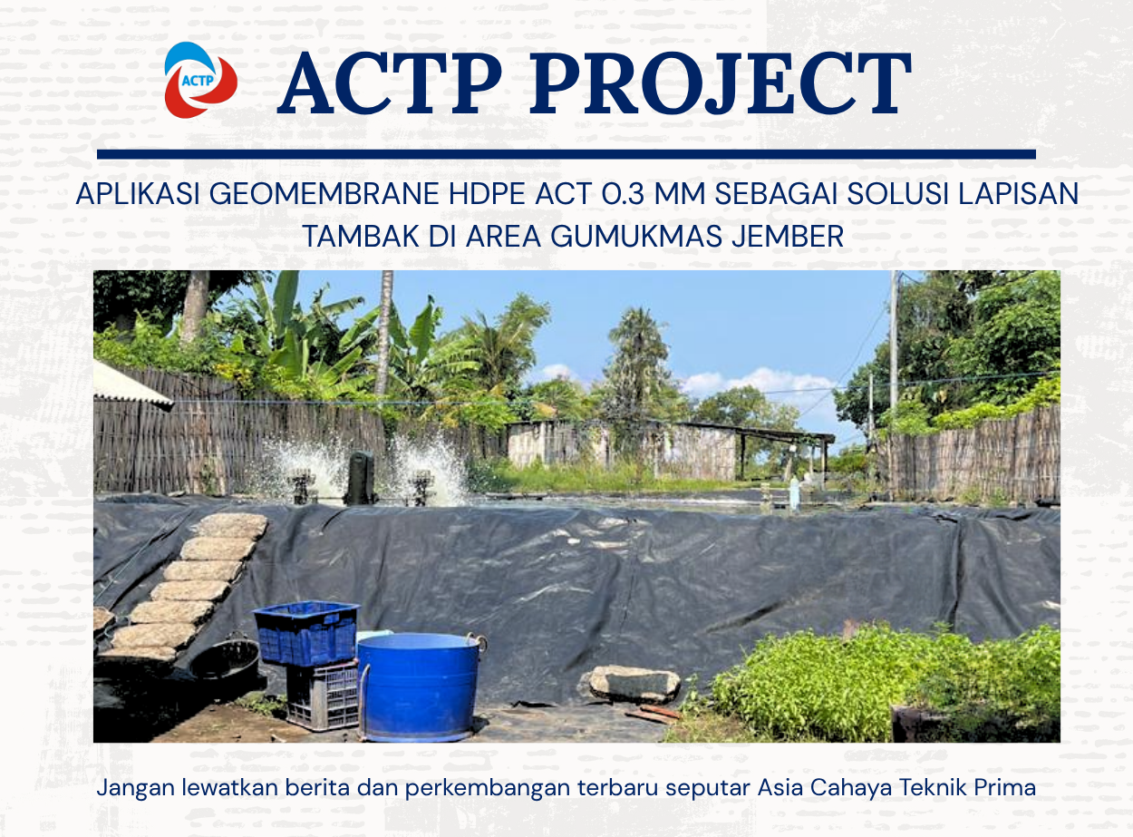 Proyek kolam tandon di Kalimantan telah menggunakan ACT HDPE Geomembrane sebagai lapisan pendukung kolam.